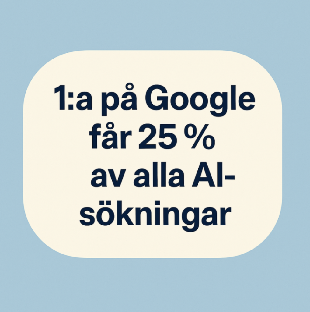 En studie på 25 000 sökningar visar att rankar du etta på Google har du 25 % chans att synas i AI-svar från ChatGPT, Perplexity och Google AI Overviews.