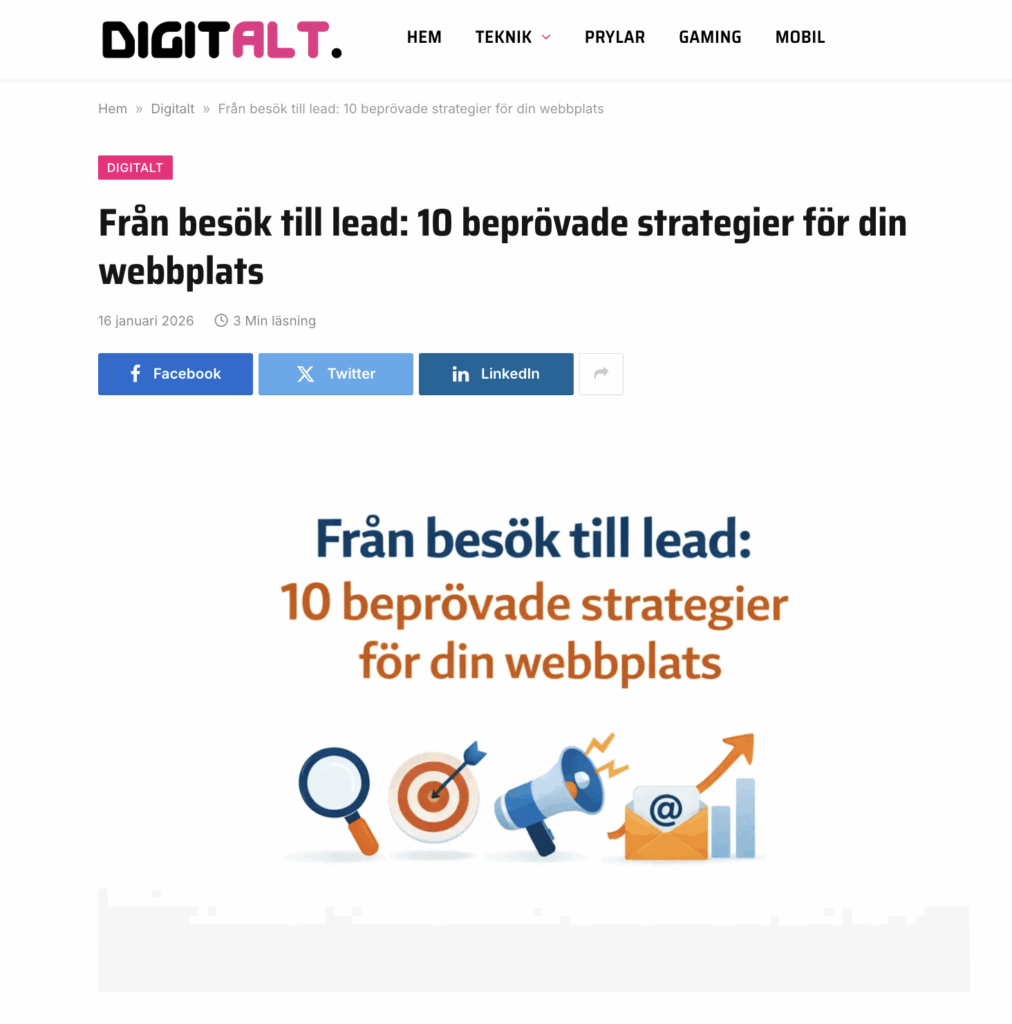 Företagare.se fick en länk till vår guide om att få mer leads…